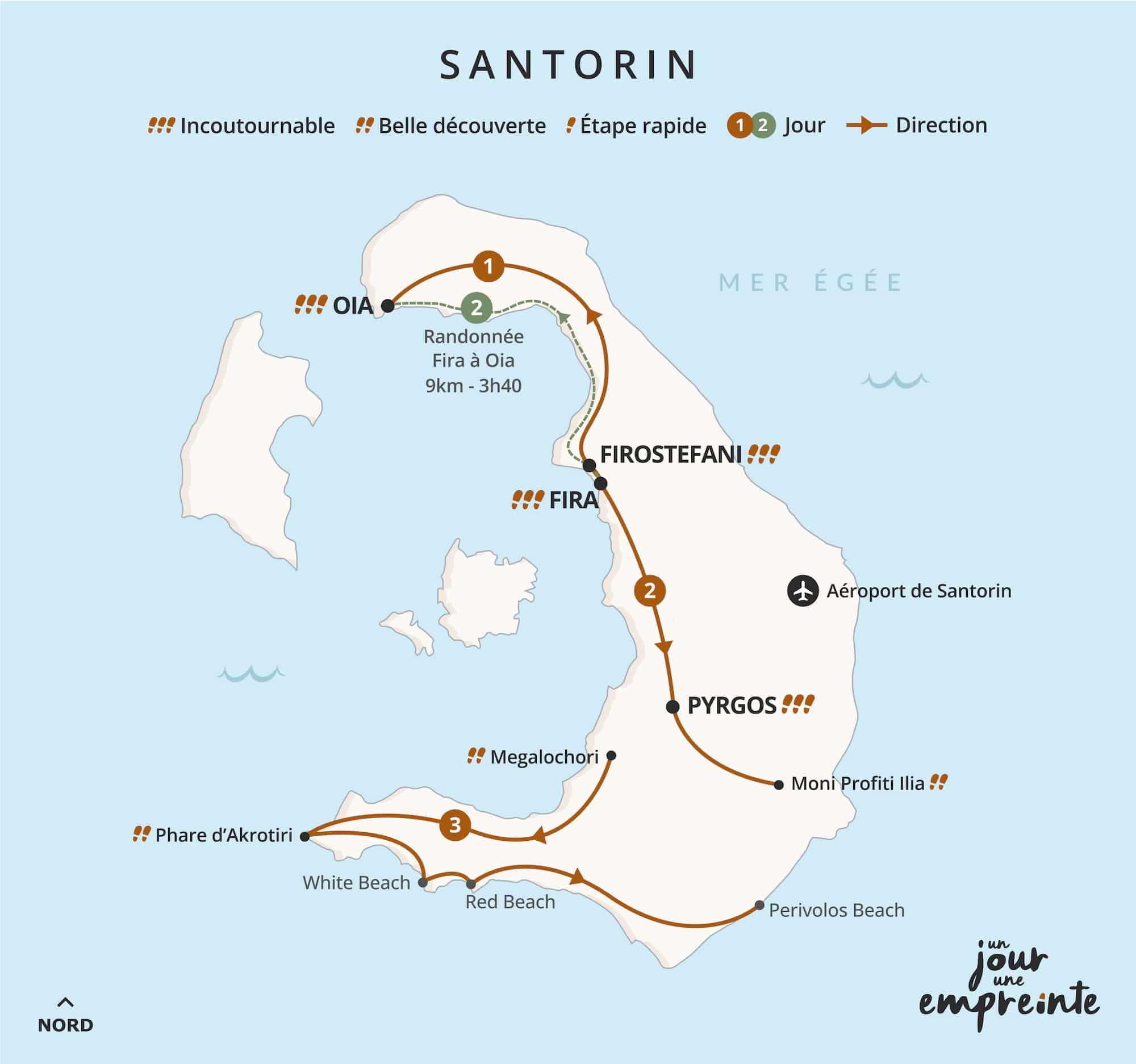 Découvrez Santorin en 3 jours en suivant article et notre itinéraire détaillé, jour par jour, pour explorer les plus beaux villages de l’île, ses plages emblématiques, ses panoramas volcaniques et ses incontournables.