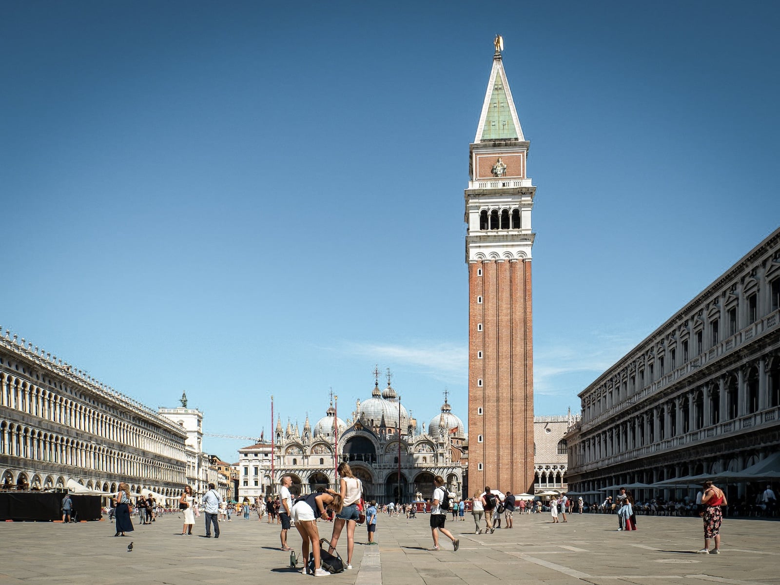 Levez la tête pour voir le clocher à 98,6 mètres ! A la clé, un magnifique panorama sur la ville, les îles et la lagune.